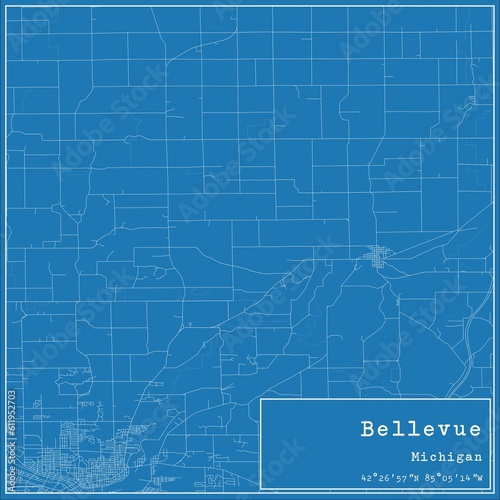 Fototapeta premium Blueprint US city map of Bellevue, Michigan.