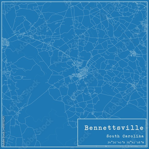 Fototapeta premium Blueprint US city map of Bennettsville, South Carolina.