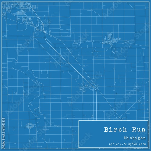 © Rezona, Obraz premium Blueprint US city map of Birch Run, Michigan.