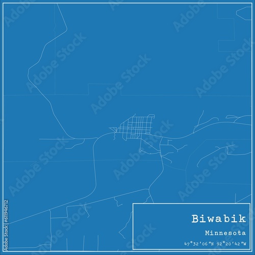 Fototapeta premium Blueprint US city map of Biwabik, Minnesota.