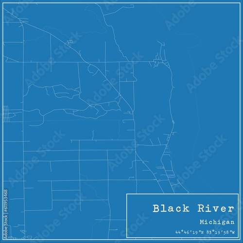 © Rezona, Fototapeta premium Blueprint US city map of Black River, Michigan.