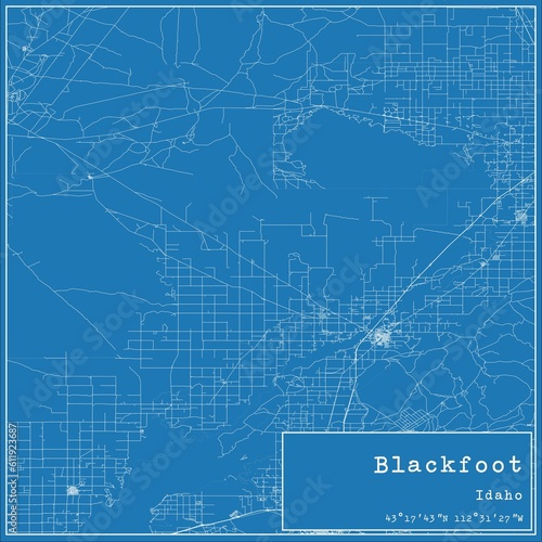 Obraz premium Blueprint US city map of Blackfoot, Idaho.