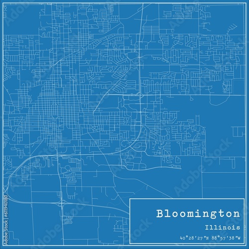 Fototapeta premium Blueprint US city map of Bloomington, Illinois.