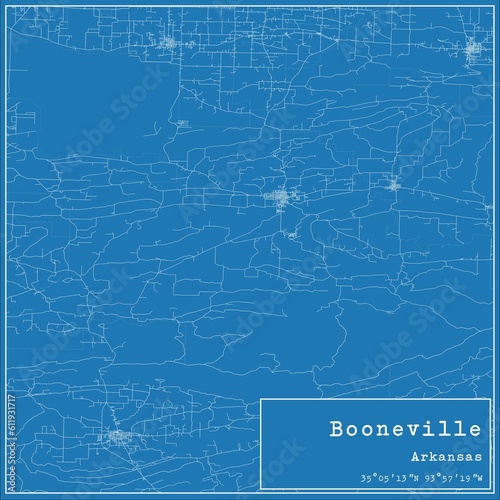 © Rezona, Fototapeta premium Blueprint US city map of Booneville, Arkansas.