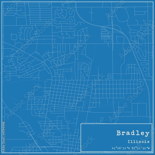 Fototapeta premium Blueprint US city map of Bradley, Illinois.
