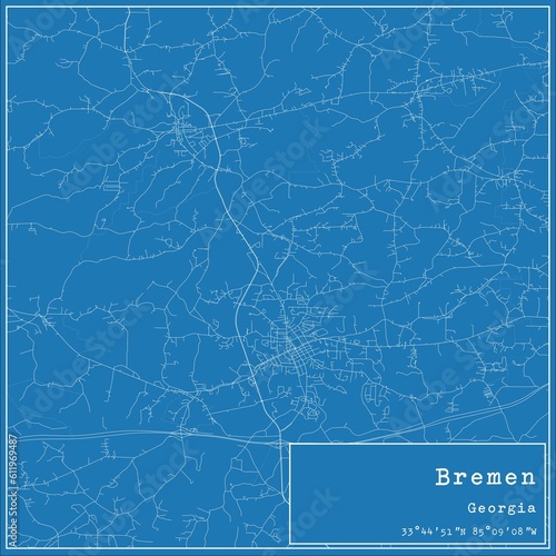 Obraz premium Blueprint US city map of Bremen, Georgia.