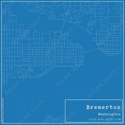 © Rezona, Fototapeta premium Blueprint US city map of Bremerton, Washington.