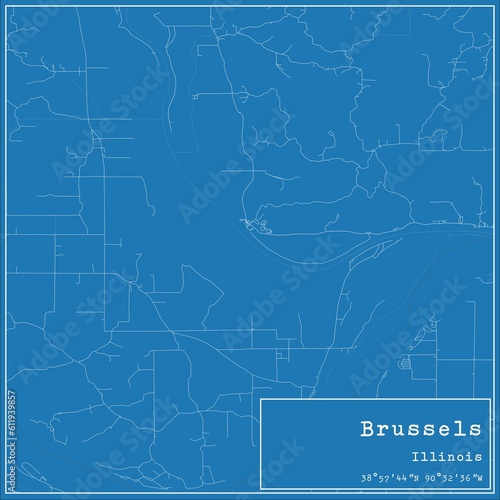 Fototapeta premium Blueprint US city map of Brussels, Illinois.
