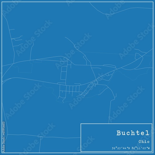 Fototapeta premium Blueprint US city map of Buchtel, Ohio.