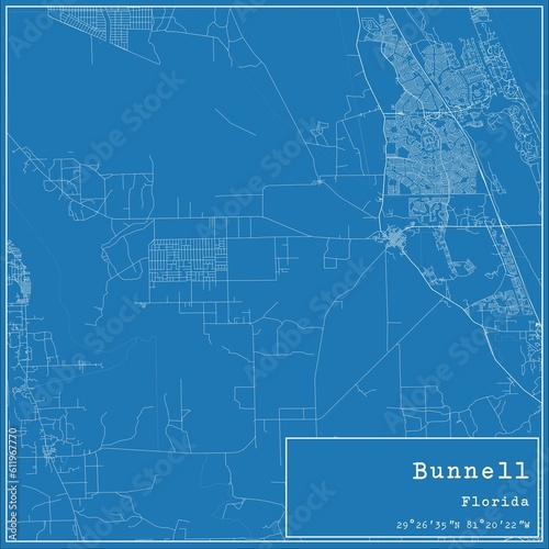 © Rezona, Fototapeta premium Blueprint US city map of Bunnell, Florida.