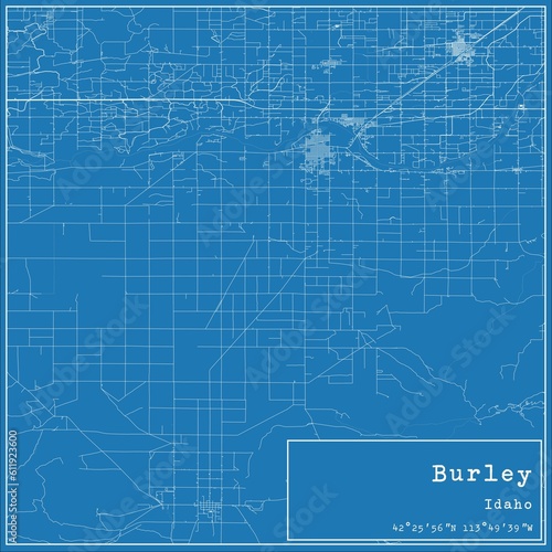 Obraz premium Blueprint US city map of Burley, Idaho.