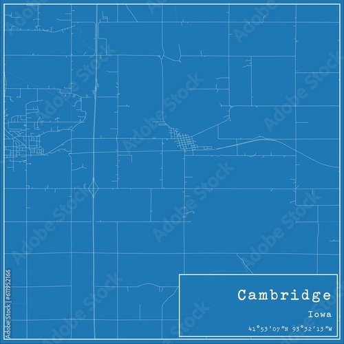Fototapeta premium Blueprint US city map of Cambridge, Iowa.