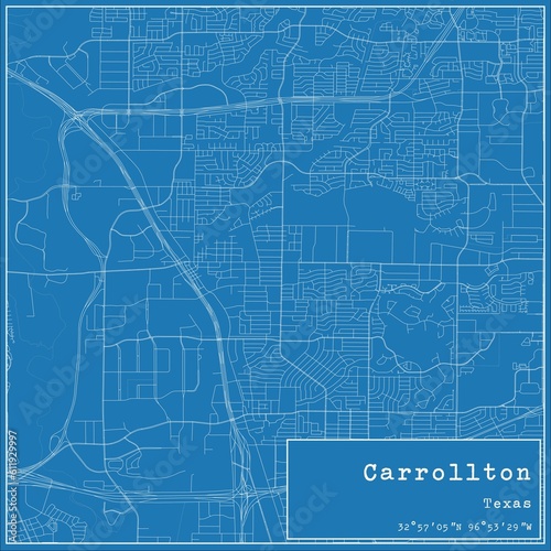 © Rezona, Fototapeta premium Blueprint US city map of Carrollton, Texas.