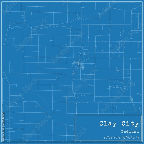 Fototapeta premium Blueprint US city map of Clay City, Indiana.