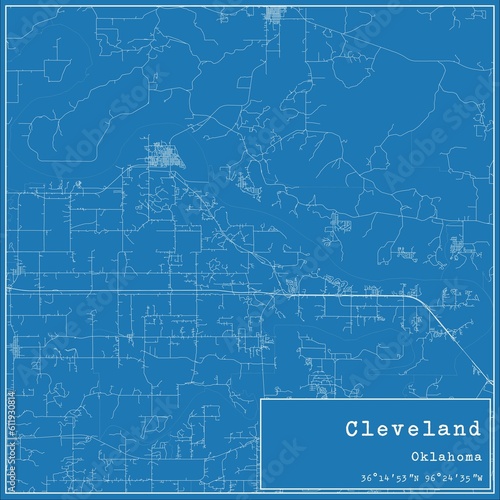 Fototapeta premium Blueprint US city map of Cleveland, Oklahoma.