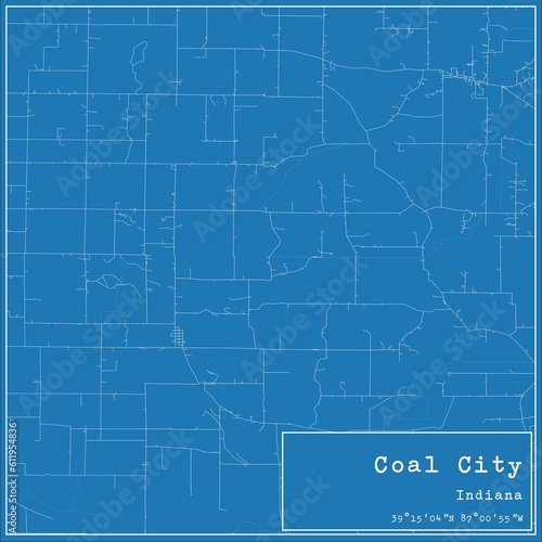 © Rezona, Fototapeta premium Blueprint US city map of Coal City, Indiana.