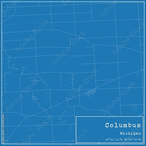 Fototapeta premium Blueprint US city map of Columbus, Michigan.
