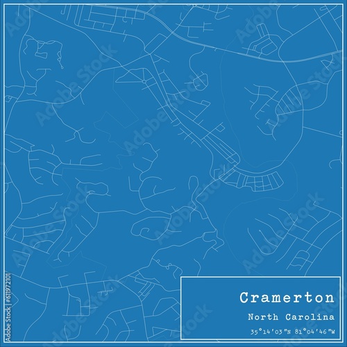© Rezona, Obraz premium Blueprint US city map of Cramerton, North Carolina.