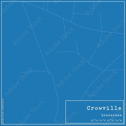 Fototapeta premium Blueprint US city map of Crowville, Louisiana.
