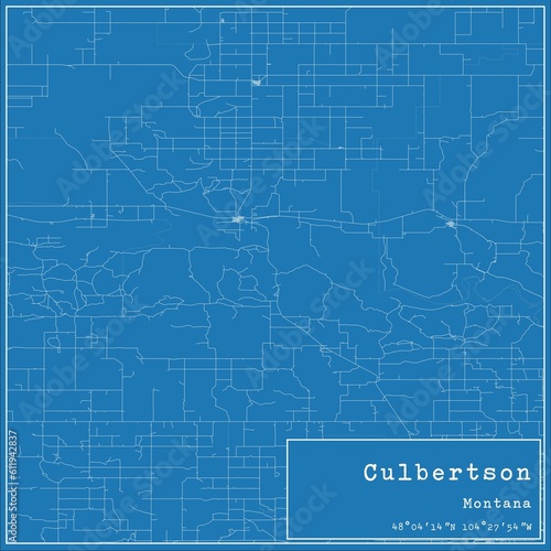 Fototapeta premium Blueprint US city map of Culbertson, Montana.