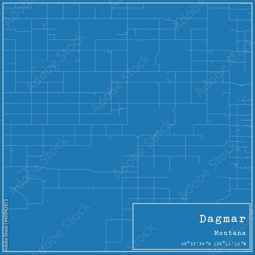 Fototapeta premium Blueprint US city map of Dagmar, Montana.