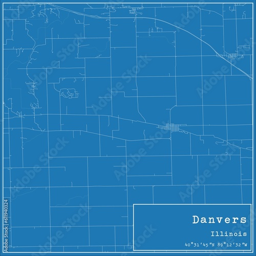 © Rezona, Fototapeta premium Blueprint US city map of Danvers, Illinois.