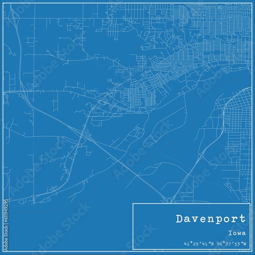 Fototapeta premium Blueprint US city map of Davenport, Iowa.