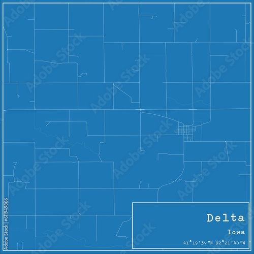 Fototapeta premium Blueprint US city map of Delta, Iowa.