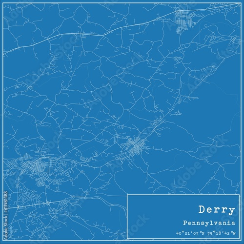 Obraz premium Blueprint US city map of Derry, Pennsylvania.