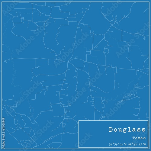Obraz premium Blueprint US city map of Douglass, Texas.