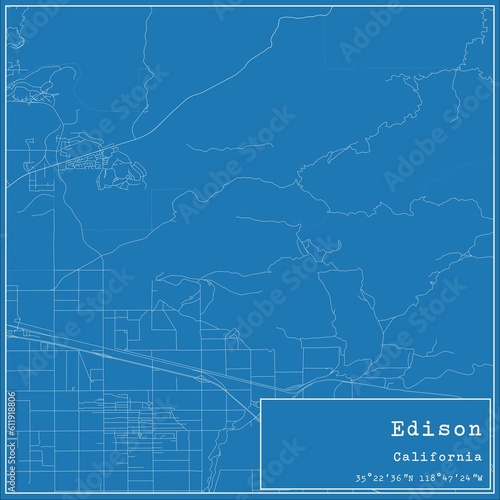 © Rezona, Fototapeta premium Blueprint US city map of Edison, California.
