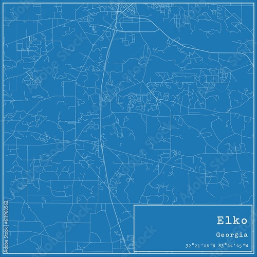 © Rezona, Fototapeta premium Blueprint US city map of Elko, Georgia.