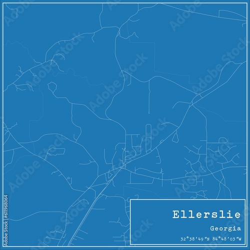 Fototapeta premium Blueprint US city map of Ellerslie, Georgia.