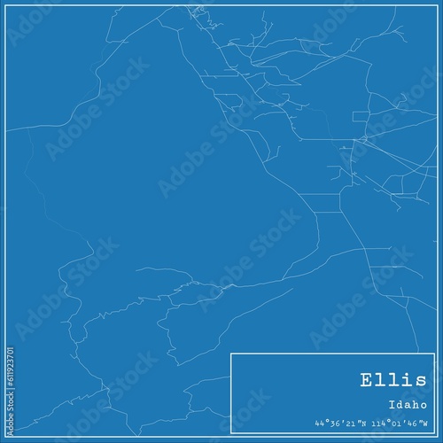 Fototapeta premium Blueprint US city map of Ellis, Idaho.