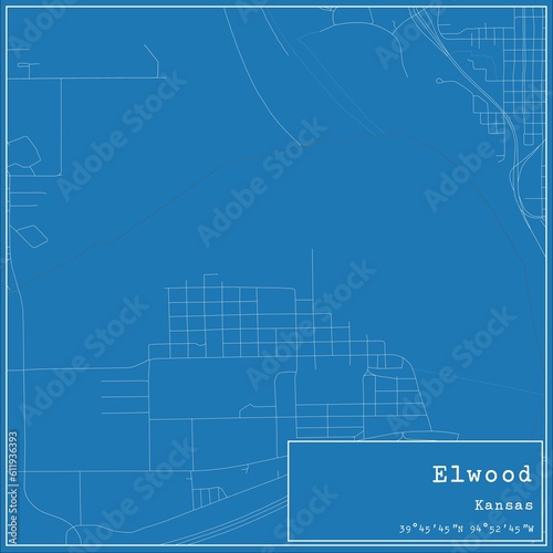 © Rezona, Fototapeta premium Blueprint US city map of Elwood, Kansas.