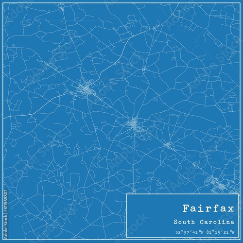 Fototapeta premium Blueprint US city map of Fairfax, South Carolina.