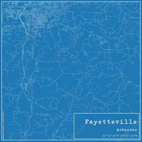 © Rezona, Fototapeta premium Blueprint US city map of Fayetteville, Arkansas.