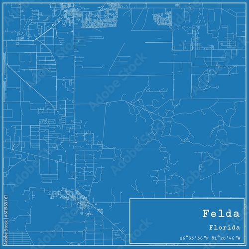 © Rezona, Fototapeta premium Blueprint US city map of Felda, Florida.