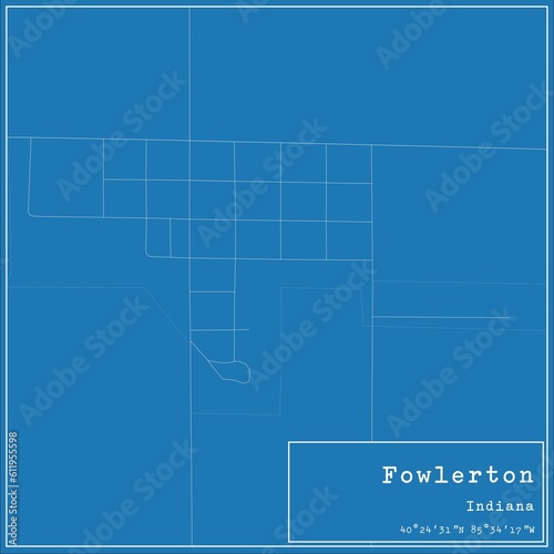 © Rezona, Fototapeta premium Blueprint US city map of Fowlerton, Indiana.