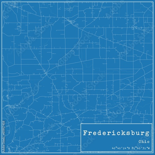 © Rezona, Fototapeta premium Blueprint US city map of Fredericksburg, Ohio.