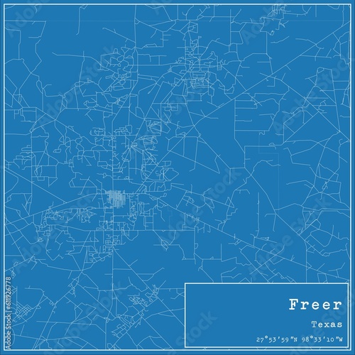 © Rezona, Fototapeta premium Blueprint US city map of Freer, Texas.