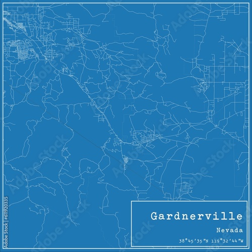 © Rezona, Fototapeta premium Blueprint US city map of Gardnerville, Nevada.