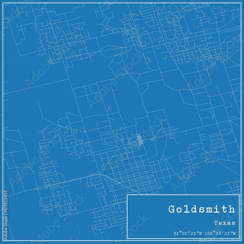 Fototapeta premium Blueprint US city map of Goldsmith, Texas.