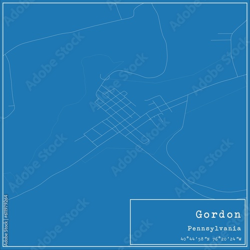 Fototapeta premium Blueprint US city map of Gordon, Pennsylvania.