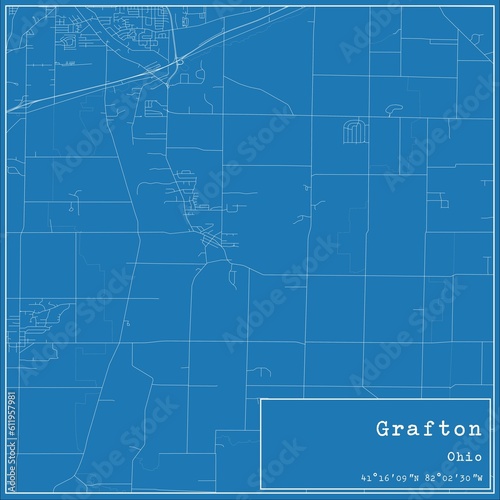Fototapeta premium Blueprint US city map of Grafton, Ohio.