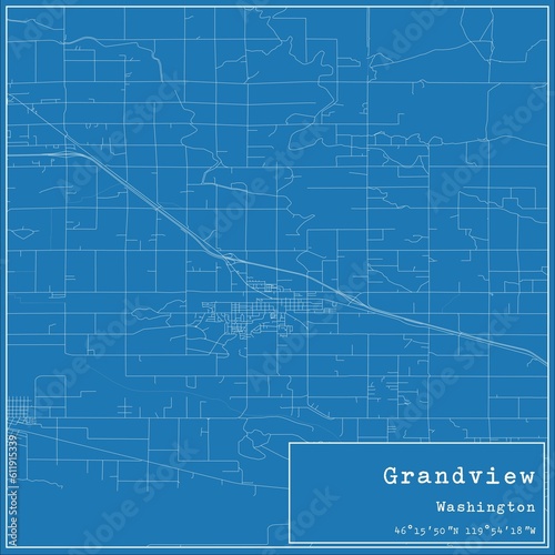 © Rezona, Fototapeta premium Blueprint US city map of Grandview, Washington.