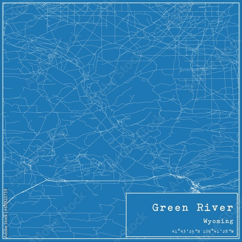 © Rezona, Fototapeta premium Blueprint US city map of Green River, Wyoming.