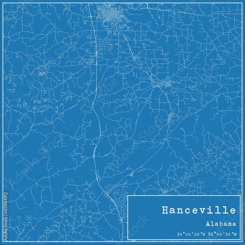 Fototapeta premium Blueprint US city map of Hanceville, Alabama.