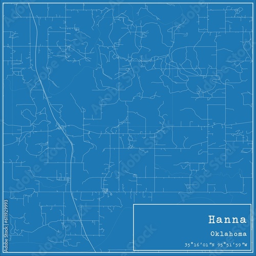 Obraz premium Blueprint US city map of Hanna, Oklahoma.