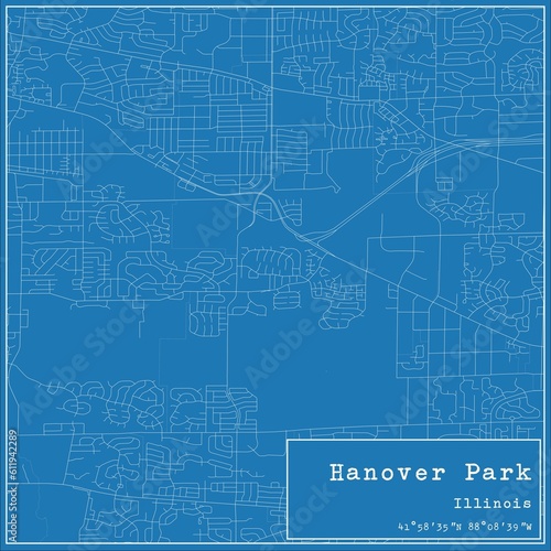 Naklejka premium Blueprint US city map of Hanover Park, Illinois.